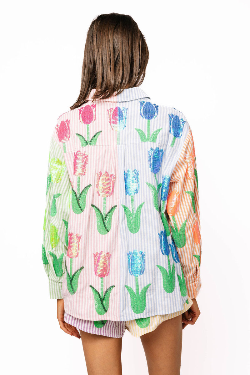 Queen of Sparkles - Striped Colorblock Tulip Button Up