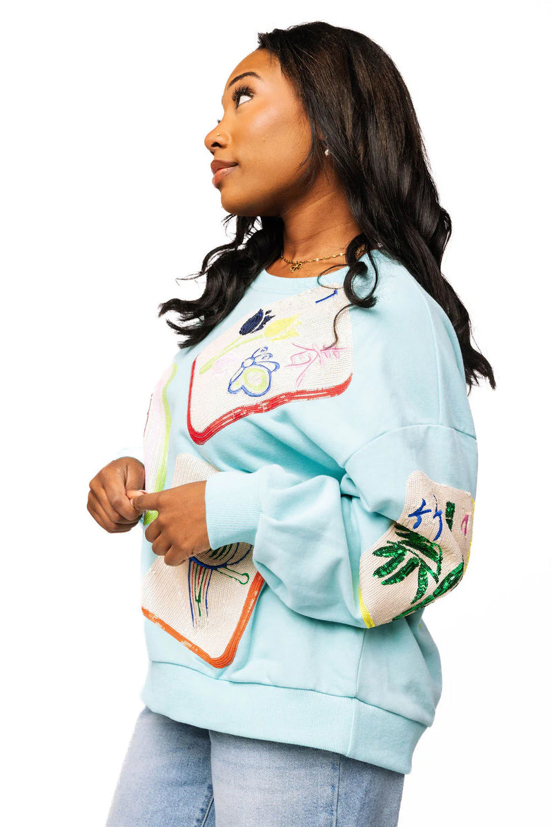 Queen of Sparkles - Aqua Scattered Mahjong Tile Sweatshirt