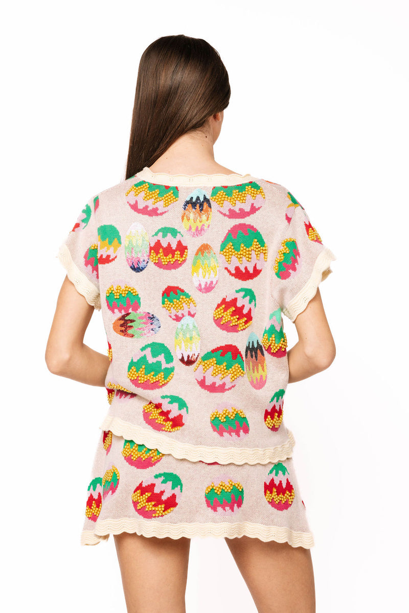 Queen of Sparkles Multi Easter Egg Tie Up Knit Top