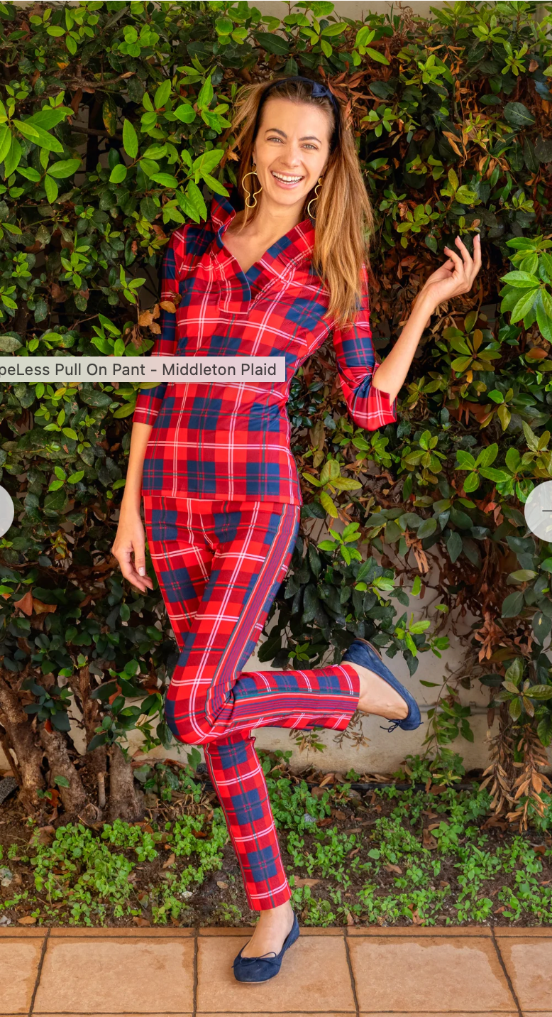 Gretchen Scott - Gripeless Pull on Pants - Middleton Red Plaid