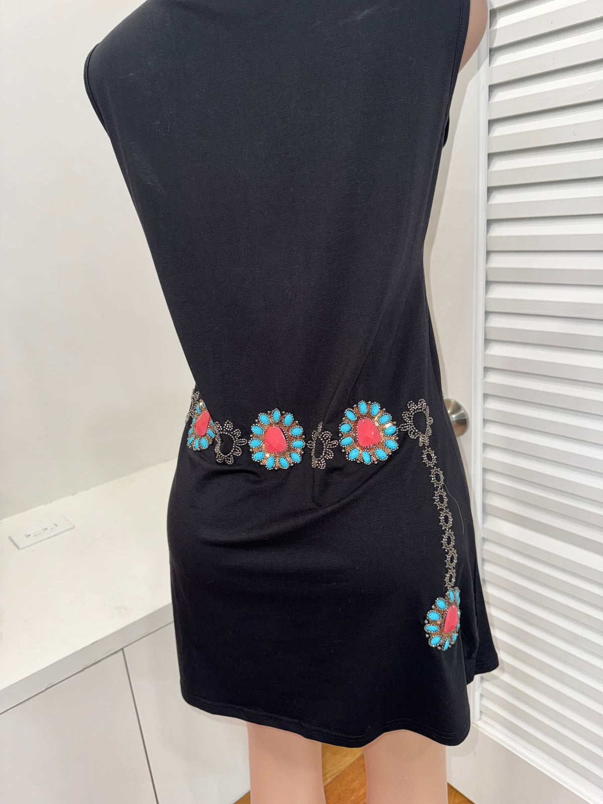 Queen of Sparkles-Black Turquoise Necklace and Belt Dress